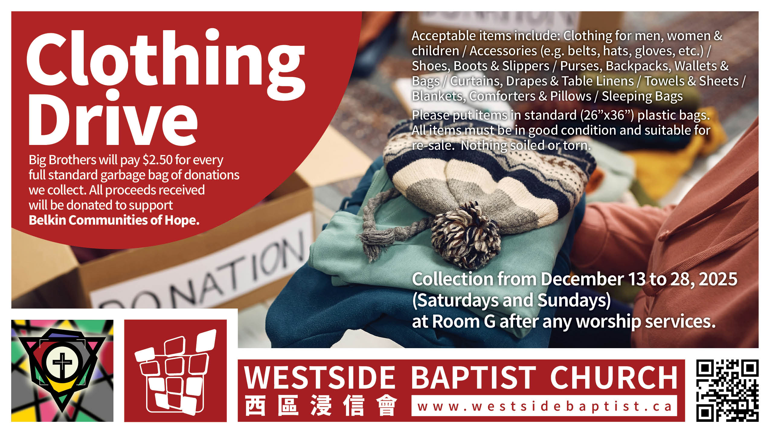 Clothing Drive (Collection dates: Saturdays and Sundays, December 13–28)